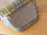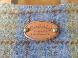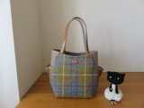 ブルー系チェックのハリスツイードとベージュのバイオウオッシュ帆布でちょっと大きめのラウンドトートバッグを作りました。