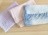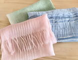 さらウール*WOOLSILK*薄桜色×青竹色*ウールシルクストール品のある柔らかな色合いと艶のストールに惹かれました。 どれも素敵でかなり迷いましたが、2枚購入致しました。 春になり服装が軽くなりますので、このストールをつけるのが楽しみです。 金属のネックレスが苦手なので、ストールがアクセントになります。 大切に致します。 素敵なストールをありがとうございます。