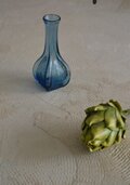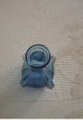 気泡の入ったブルーのプレスガラス花瓶 一輪挿し