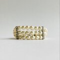 こちらはガラス素材でバロックタイプの原玉に、オリジナルパール塗料を何層にも渡り重ね塗りを施した日本製バロックパールブレスレットになっております。パールカラーはきめ細かい質感と抑え目で優しい艶感が特徴のクリームイエロー色。表面にゆるやかで不規則な凹凸と個体差のあるガラスバロックパールになります。直径約6mm玉で、長さは全長約18cm前後にしました。テールエンドにアジャスターを付けておりますので約5cm程調節可能です。※ガラスバロックパールは製造特性上、それぞれわずかな大小がございますので、予めご了承下さい。