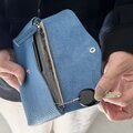 【ご使用上のヒント】 両面に硬いカード(例:クレジットカード、厚みのあるポイントカードなど)を収納すると、中央の小銭入れが開きにくくなる場合がございます。片面には柔らかいカード(例:薄手のポイントカード、紙製のカードなど)のご利用を推奨いたします。