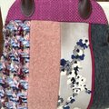 反対面はダークピンクと無地のウールを合わせました。持ち手はしっかりした合皮です。