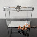 蓋の前面に錫製の桜とスワロフスキーのパールビーズを飾りました。