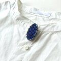 "宝石のようなブルーの刺繍オーバル型ブローチ"
