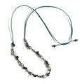 ダークグリーンのワックスコードを編んだ紐は約72cmまでお好みの長さに調節可能です。