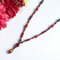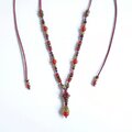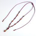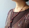 落ち着いた赤系のY字型フリーサイズネックレスです。