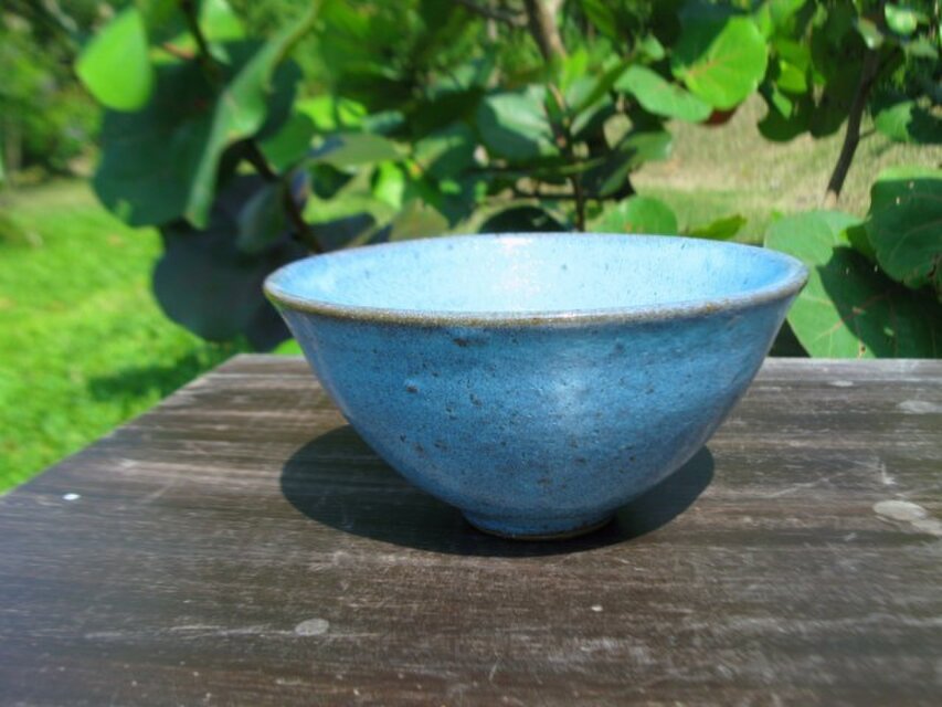 赤土の素地が反映されていて、明るいブルーの釉薬ですが、お料理やご飯が素直に映える器です。