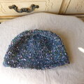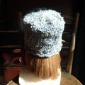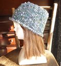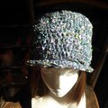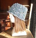 トップが丸く平たくてバケツ型に縁編みで小さなプリムをつけています。