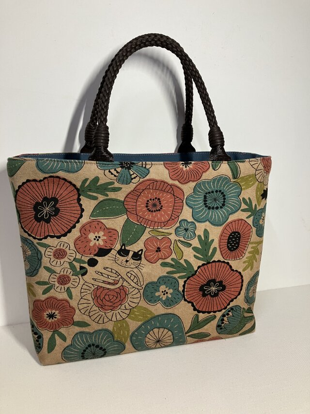 POPな柄ですが柿渋をかけた事で落ち着いた柔らかな印象のバッグになりました。