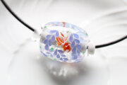泡を入れた透明の地に、藤を咲かせ金魚を泳がせました。