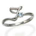 シルバー(S・M・K・T・H・Y):天然アクアマリーン・イニシャルリング ◎あなたの誕生石もセットできます。