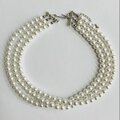 【再販】ガラスパール3連チョーカーネックレス/6mm約33cm+約5cm/ホワイト/R/made in japan