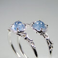 鮮やかなブルーのラズライトを内包した小さな水晶を、ボタニカルな細身のリングにセットしました。