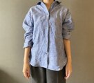 受注製作 大人の上質ハーフリネンシャツ コットンリネン 春シャツ 抜き衿シャツ 貝ボタン ちょっと大きめ 40サイズ
