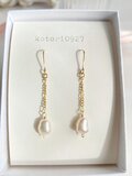 14kgf 大粒バロック真珠のピアス ロングチャームピアス ac/932