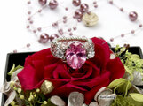 キュービックジルコニア台座付き〔ピンク/シルバー色〕