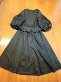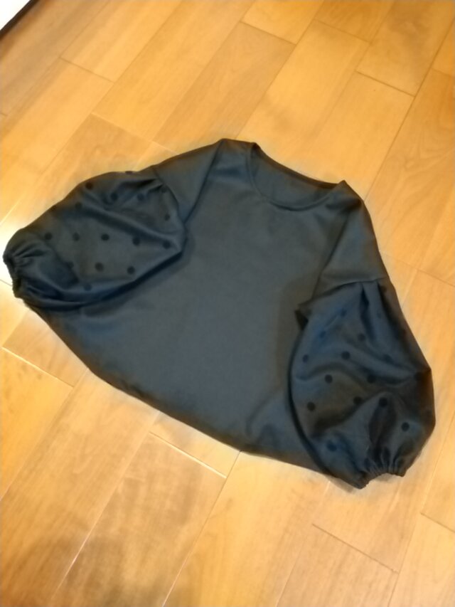 上質ブラックウールにドットチュールのパフスリーブトップス