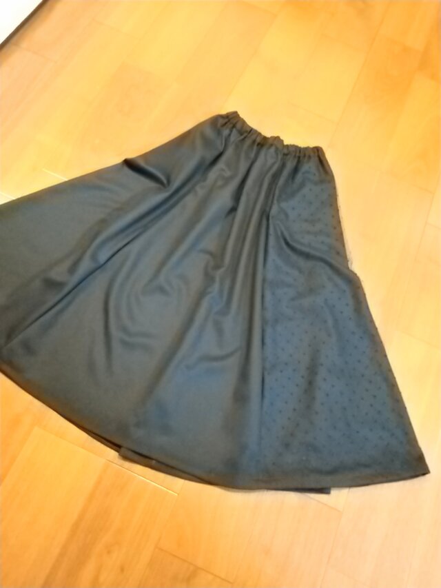 上質ブラックウールにドットチュールの5枚はぎスカート