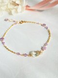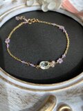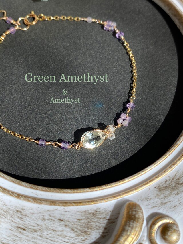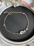 14kgf 宝石質グリーンアメジストとアメジストのお花 ブレスレット ac/916