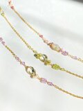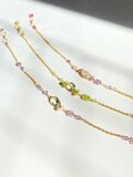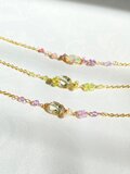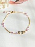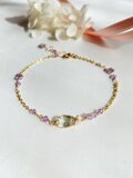 宝石質のグリーンアメジストと、お花型に仕立てたピンクアメジストのブレスレットです。