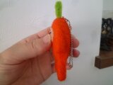 羊毛フェルトで作ったマスコットです。強めに刺し固めてありますが、強い力でひっぱると破損する可能性がございますのでお気を付けください。
