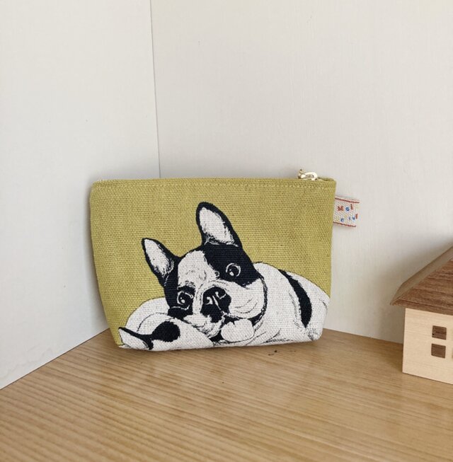 帆布生地を使用し、ポーチを作りました。