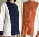 くったり優しいフレンチリネン100%素材の切り替えが着こなしのポイントになるシャツです.