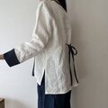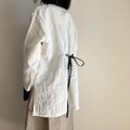 ジャケットやカーディガンなどの前開きを効果的に使い、後ろのリボン結びでスタイルフィットも素敵なスタイリングに仕上がる一枚です。
