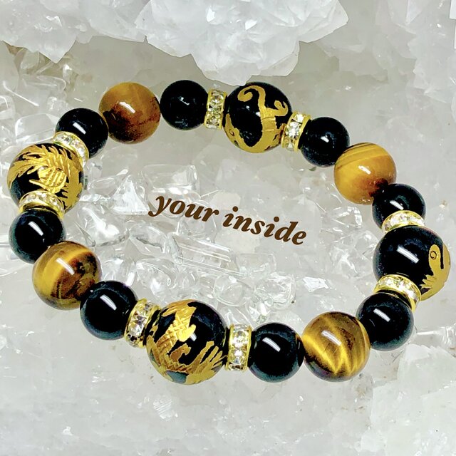 四神獣 金色彫り オニキス 14㎜