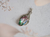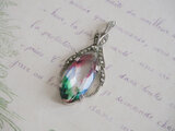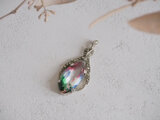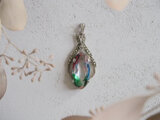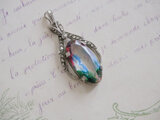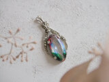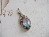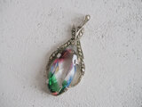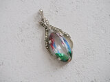 貴重なアイリスガラスとマーカサイト(マルカジット)のシルバーペンダントトップ。