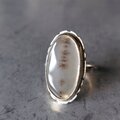 まるで植物がある風景を閉じ込めたようなデンドリティックアゲートを飾り枠を施したシルバーリングに仕立てました。