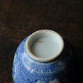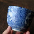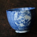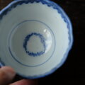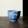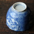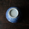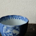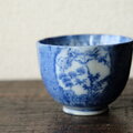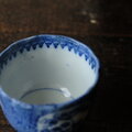 青で素敵◆鶴がいる。伊万里 微塵子柄印判猪口 向付 骨董・antiques 明治〜大正期