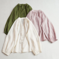 【受注製作】100%リネン.柔らかい.かわいいシャツ.ブラウス.トップス.麻