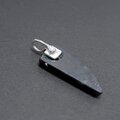 スペクトロライトの原石を磨き、金具を取り付けたシンプルなペンダントに仕上げました。