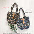 ⭐️10点売れました⭐ おしゃれな ウィリアムモリス いちご泥棒 ブルー ネイビー系 花柄 ヌメ革 (中) 軽い トートバック