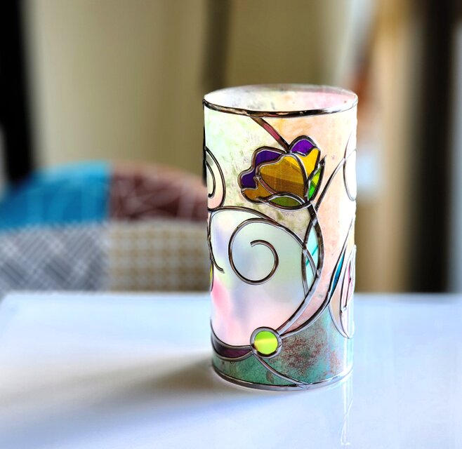 光が通ることで輝きが増すカラーフィルムのグラスアートと