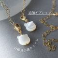 パレードの主役に、ふっくらとした白蝶貝の猫チャームをご用意しています。