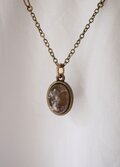 落ち着いた雰囲気のネックレスです。このストロベリークォーツは透明な水晶にレピドクロサイトが内包されたレピドクロサイトinクォーツとも呼ばれるレアストーンです。内包された天然クラックや真っ赤なレピドクロサイトの模様が印象的で表面は丁寧なカボションカットが施されており美しく滑らかです。