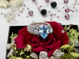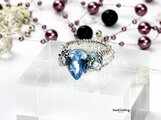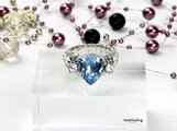 シンデレラカラーのスワロ・アクアマリン雫リング、屈折率が高いので光が差し込むとキラキラ輝きます。