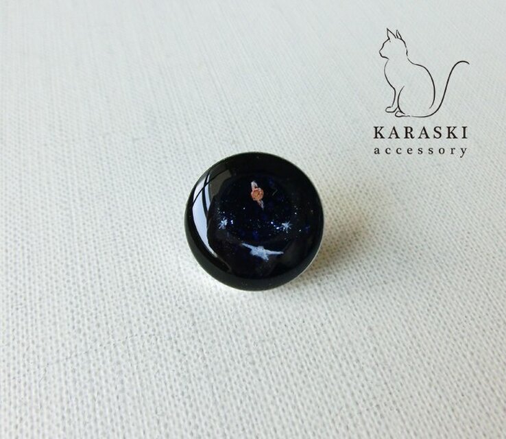 手描きのオリジナルイラストをレジンで閉じ込めたピンバッチです。