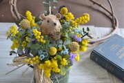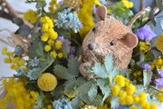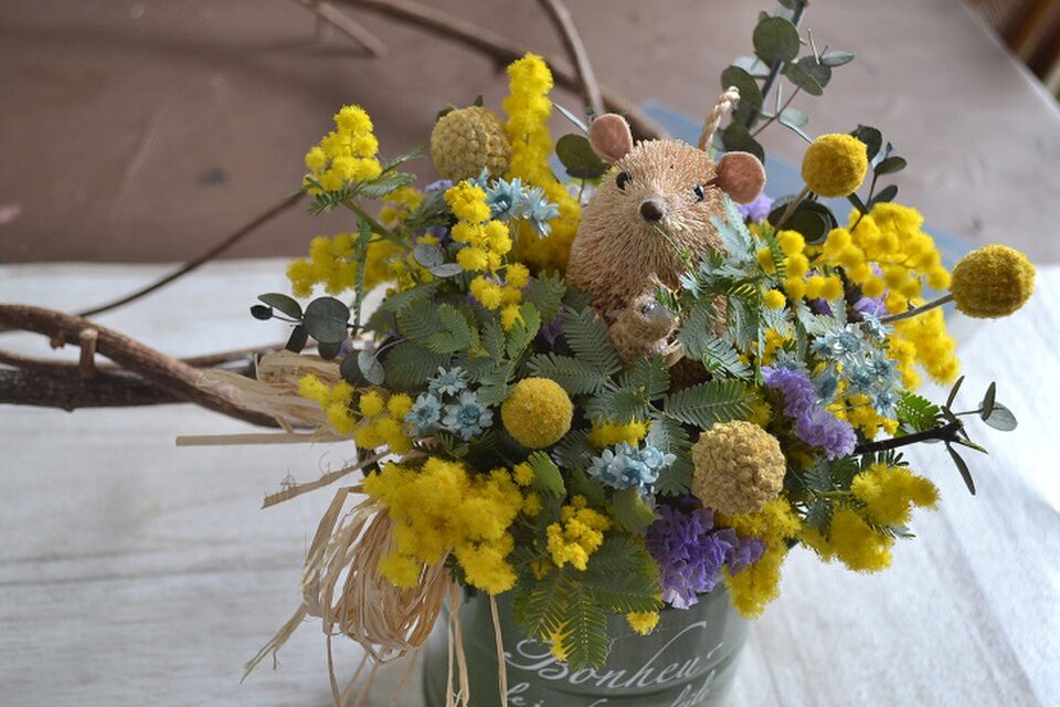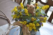 春を感じるたっぷりミモザにちょこんとハムスター。