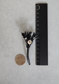 プックリした真珠からヒラヒラとなびく虹色のヒレ。 とっても素敵です。 大きさも十分ですし、スワロフスキ-のアクセントも効いています。 黒い服に映えそうです。