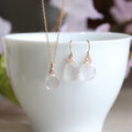 桜の花びら ピアス/イヤリング&ネックレス セット| 天然石 ローズクォーツ|14Kgf|アレルギー対応 |Sakura