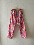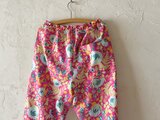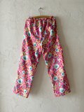 マゼンダをベースに水色、黄緑、オレンジのお花 色合わせがかわいいパジャマズボン。