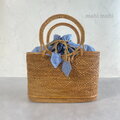 夏の日の爽やかなブルーは、かごバッグの清涼感をさらに涼しげに。