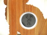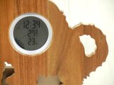 仔猫の姿を模った木製のデジタル温・湿度計(時計付)です。