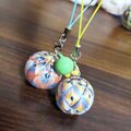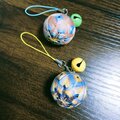 アロマオイルで薫りつけしたストラップ作りました。DMC刺繍糸で一張一針かがったミニ手鞠チャームです。円周9cm程