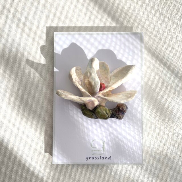 ※再販より、石粉粘土の枝部分を改良し、すべて桧に変更し、形などより木蓮らしくしました。