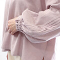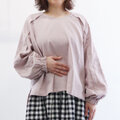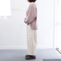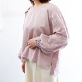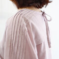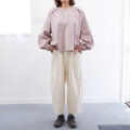 2way tuck & gather blouse (white/linen)ホワイトのブラウスであまり、特長が無いように見えるけれど、ボタンのつけかたに変化をもたせ、デザインに工夫されたところが、よかった。