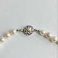 オールノットネックレスの特徴として、万が一糸が切れた場合でも被害は最小限で抑えられる点や、玉同士が密着していないので擦れあいにくく傷も付きにくい点・また首回りにフィットしやすくなっている点等がございます。この仕様は特に海外で人気があり、比較的高品質アクセサリー類によくみられる仕様です。※日本製人工真珠となっております。パール核には、原玉の成型時よりピンホールや小さい凹み等が稀に見られる場合がございますが、検品をした上、品質には問題無く許容範囲とさせて頂いております。予めご了承くださいませ。